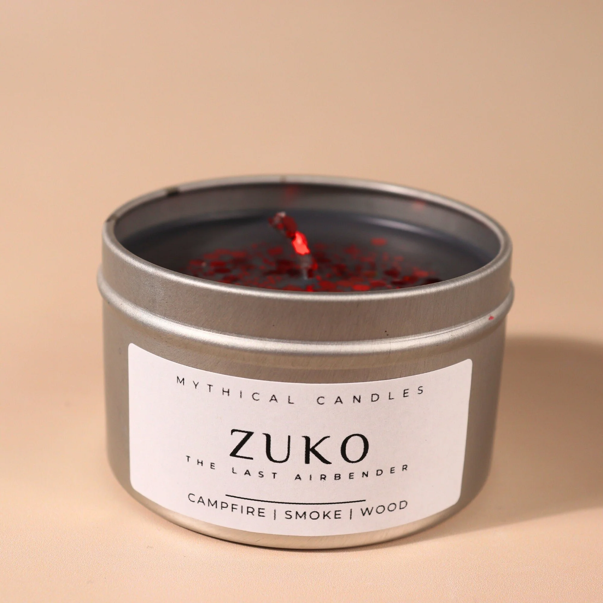 Poured in white wax and adorned with striking red and gold biodegradable glitter, this candle pays homage to the fiery grace of the Dragon of the West and the warmth that burns gently within. Presented in a tin travel container with a window, it’s perfect for moments of reflection, tea, and quiet joy.
